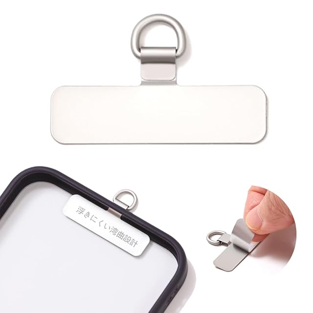 商品名:スマホ ストラップホルダー 【ミニタイプ 極薄0.25mm・湾曲設計・傷防止フィルム加工】ステンレス製タグパッチ 携帯ストラップホルダー 薄型 金属製で丈夫 10kgまでの荷重量 傷防止フィルム加工 スマホケースに挟む 全機種対応 充電影響なし 落下紛失防止 (ミニ-シルバー)