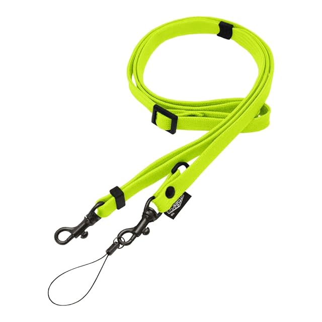 [HIGHCAMP] ハイキャンプ 2way ネック ストラップ 斜め掛け ショルダーストラップ 約70cm~約135cm 長さ調節可能 スマホ 携帯 落下防止 ネックストラップ 日本製 蛍光グリーン