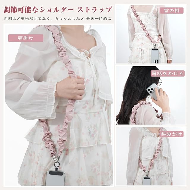 【軽量で快適な着け心地】軽量な素材を使用し、柔らかい手触りで快適な使用感。肩掛け、首掛け、斜め掛けができ、長時間の使用でも負担がかかりません。最大調整長さは約140cmで、スマホストラップとして、身長に合わせて最適な長さに調整できます。