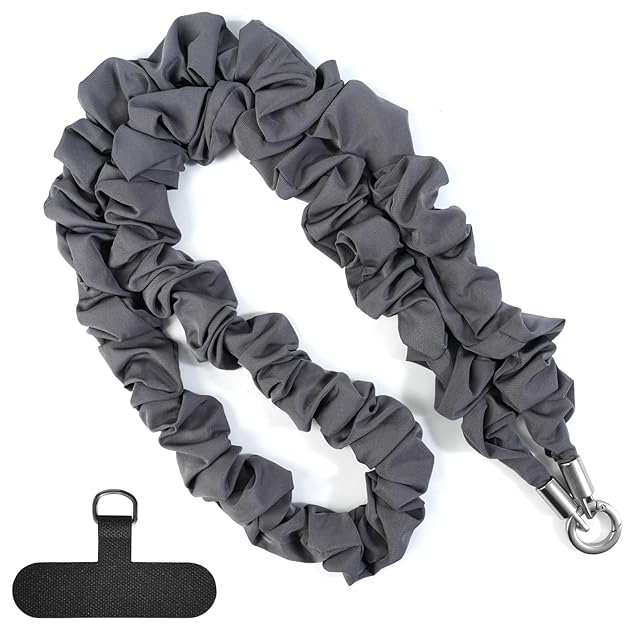 [VEISEN] スマホ ショルダーストラップ スマホストラップ 斜めがけ首掛け肩掛け 全機種対応 ドロスト ギャザー ショルダーベルト 丈夫 男女兼用 大人 かわいい レディース 落下防止 金具付き 斜めがけ 携帯ストラップ ロープ(ダークグレー)