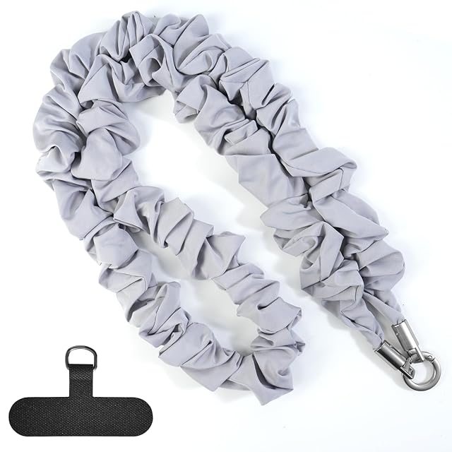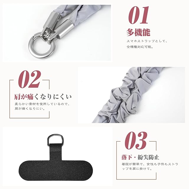 [VEISEN] スマホ ショルダーストラップ スマホストラップ 斜めがけ首掛け肩掛け 全機種対応 ドロスト ギャザー ショルダーベルト 丈夫 男女兼用 大人 かわいい レディース 落下防止 金具付き 斜めがけ 携帯ストラップ ロープ(ライトグレー)
