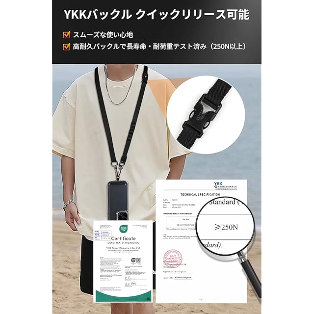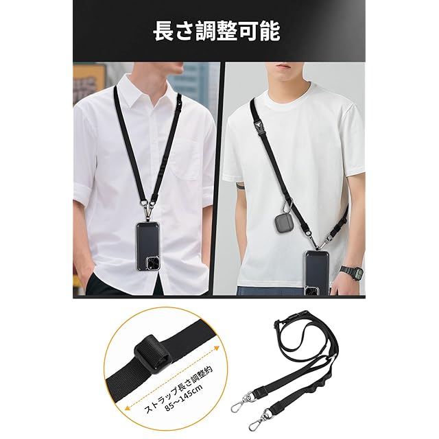 商品名:[MagStan] 【2025新改良・多機能】スマホストラップ 幅1.5cm YKKバックル使用 首掛け/斜め掛け/肩掛け/手首ひも 装着長さ45cm~75cm 瞬時の着脱で便利 長さ調節自由 ケータイストラップス 手帳型ケース対応 7Pセット付属品充実 ショルダーストラップ ネックストラップ 全機種対応 落下防止 散歩 通勤 通学 旅行 (ブラック)