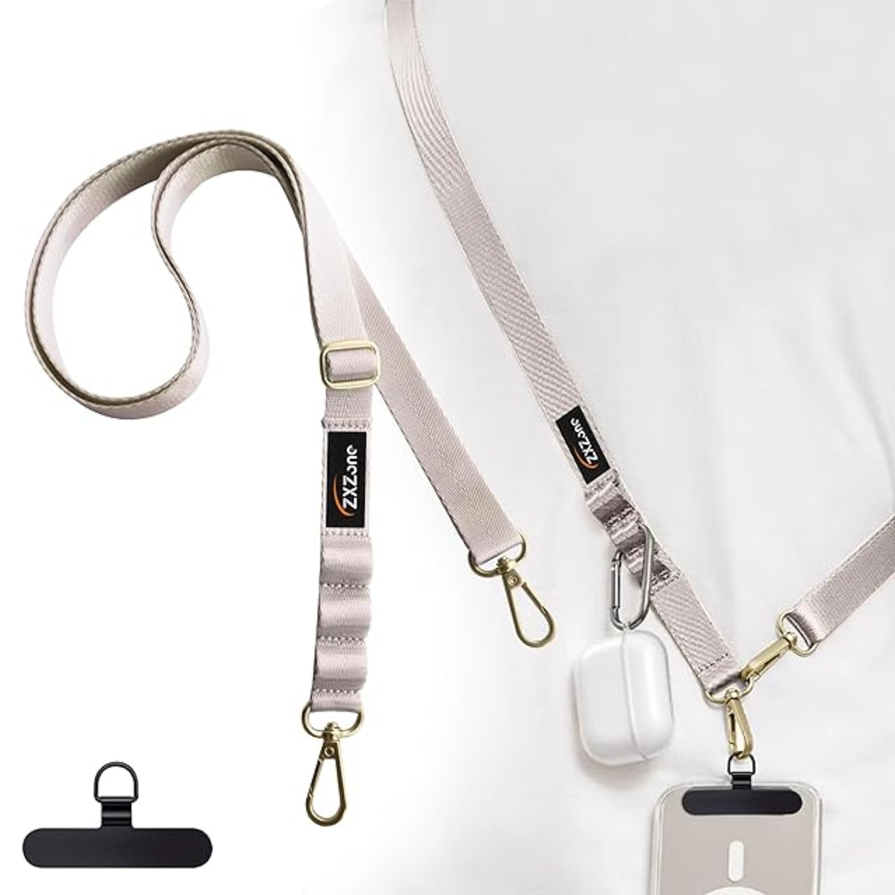 [ZXZone] スマホショルダー 斜めがけ首掛け肩掛け 長い 160cm 幅 2cm 長さ調節可能 ストラップ 1本+タグパッチ1枚入り 紛失・落下・盗難防止 便利 (アイボリーホワイト160CM)