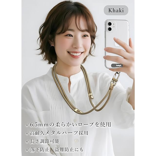 [APEGG] スマホストラップ 携帯ストラップ 肩掛け 斜め掛け 首掛け 丸紐6.5mm 長さ調節可能 スマホショルダー ストラップホルダー2枚付き 全機種対応 紛失・落下防止 軽量 Khaki