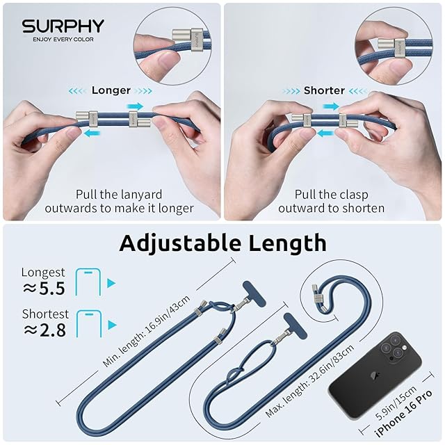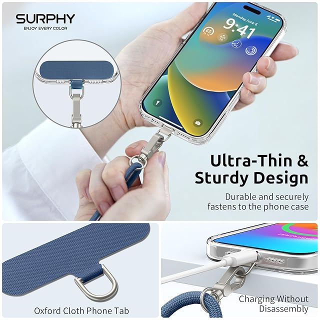 [SURPHY] 携帯ストラップ 首掛け/肩掛け/斜め掛け (ラベルパッチ 付き*2枚) スマホ ストラップ ネックストラップ 長さ調整可能 忘れ物防止 全機種対応