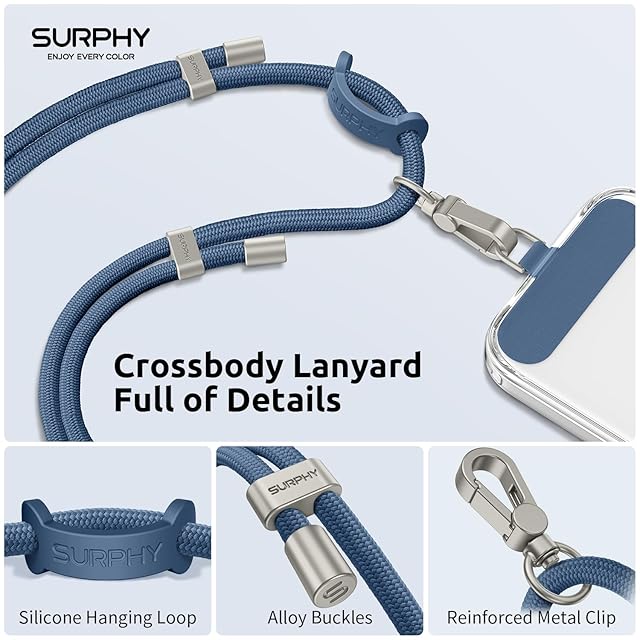 [SURPHY] 携帯ストラップ 首掛け/肩掛け/斜め掛け (ラベルパッチ 付き*2枚) スマホ ストラップ ネックストラップ 長さ調整可能 忘れ物防止 全機種対応 (デニムブルー)