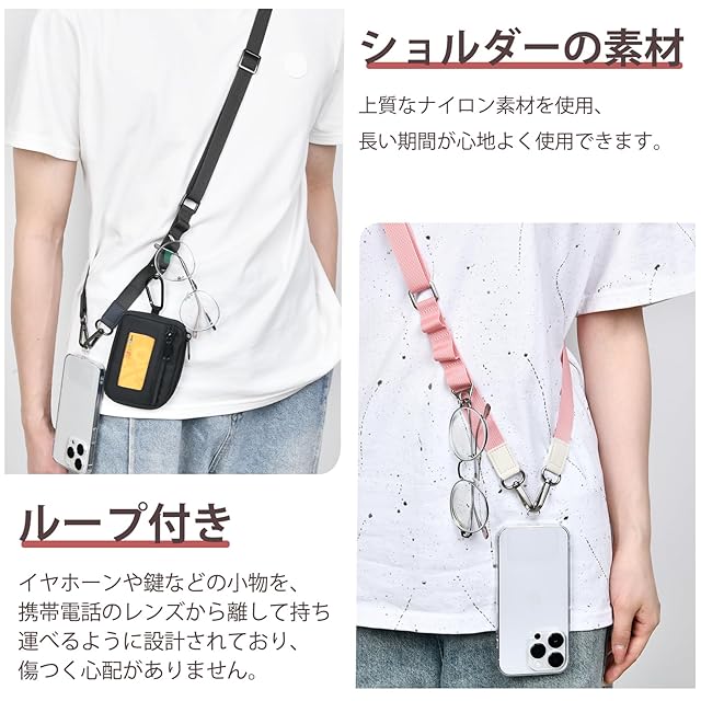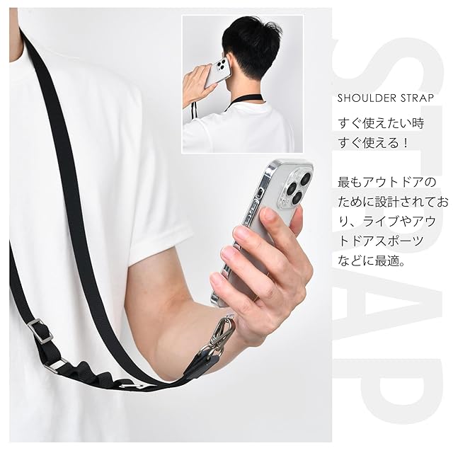 ★★★【iphone 紐ストラップ 便利さ】スマートフォンケースにホルダーを挟むだけ!いつでも簡単に取り外せます。ショルダーストラップの幅は2cmでちょうどよく、首からかけたり、肩にかけたり、斜め掛けにしたりと、快適にお使いいただけます。 スマートフォンをバッグから取り出す必要がなく、両手が自由に使えます!コンビニでのスマホ決済、お子様連れのお買い物、ライブ、フェス、アウトドアイベント、スポーツ観戦、運動会、学校行事、仕事中......。 あらゆるシーンで活躍!老若男女問わずお使いいただけます。