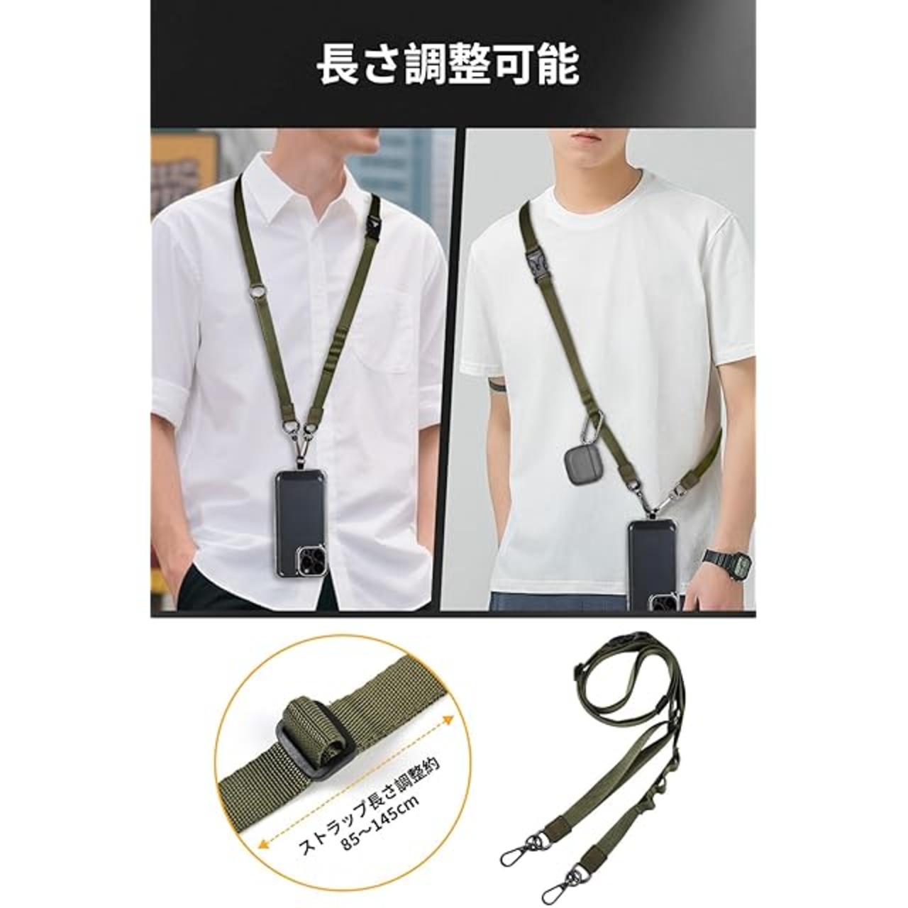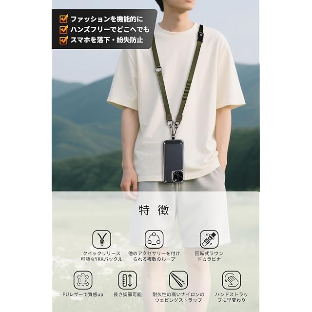 商品名:[MagStan] [2025新改良・多機能] スマホストラップ 幅1.5cm YKKバックル使用 首掛け/斜め掛け/肩掛け/手首ひも 装着長さ45cm~75cm 瞬時の着脱で便利 長さ調節自由 ケータイストラップス 手帳型ケース対応 7Pセット付属品充実 ショルダーストラップ ネックストラップ 全機種対応 落下防止 散歩 通勤 通学 旅行 (グリーン)
