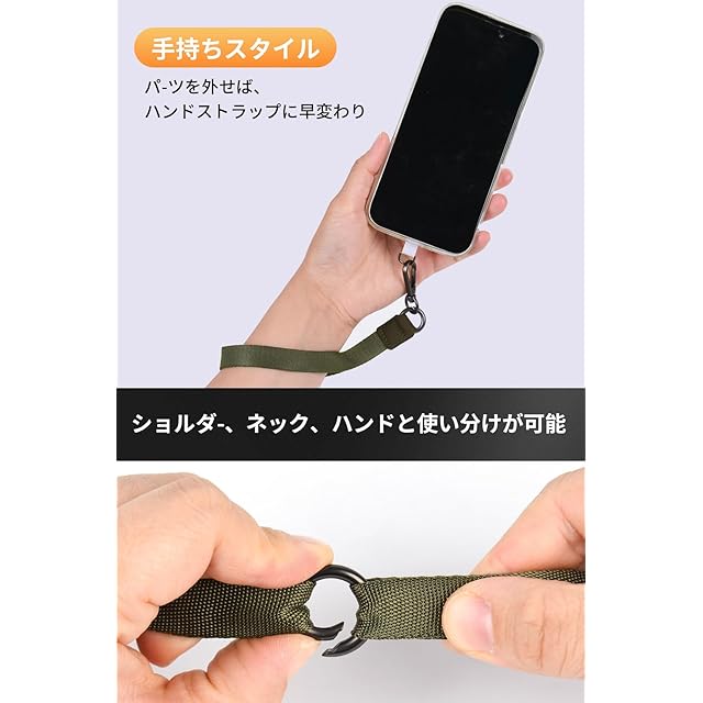 ✅【✨特徵6✨】:2段式のデザインなので、パーツを外せばハンドストラップに早変わり。パーツを外せば、肩掛けストラップスと手首ひも、両方同時に使用することができます。