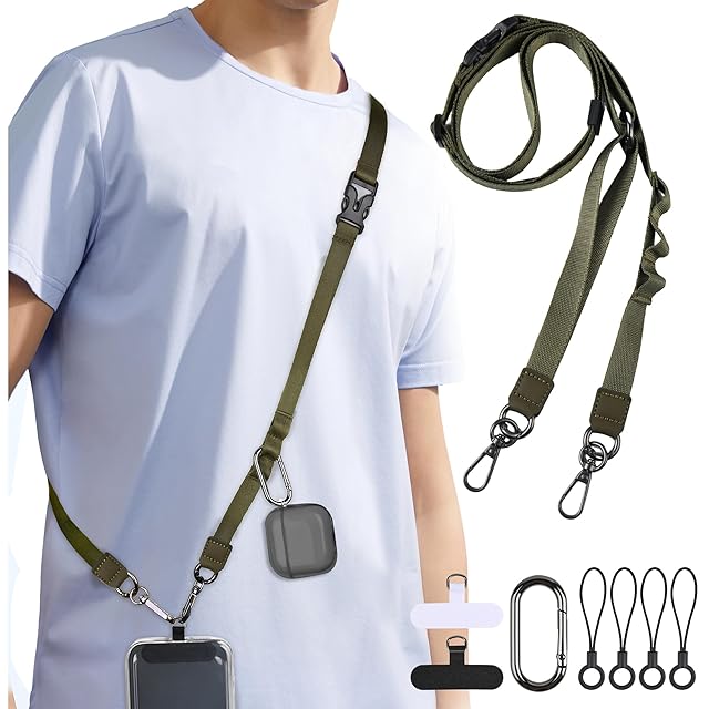 [MagStan] [2025新改良・多機能] スマホストラップ 幅1.5cm YKKバックル使用 首掛け/斜め掛け/肩掛け/手首ひも 装着長さ45cm~75cm 瞬時の着脱で便利 長さ調節自由 ケータイストラップス 手帳型ケース対応 7Pセット付属品充実 ショルダーストラップ ネックストラップ 全機種対応 落下防止 散歩 通勤 通学 旅行 (グリーン)