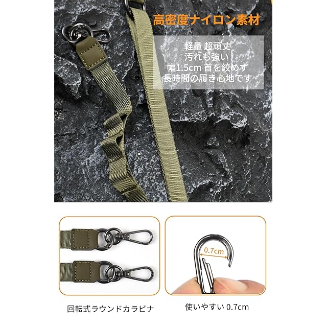 ✅【✨サイズ✨】:幅1.5cm 着用長さ45cm~75cm (金具含む)【✨内容物✨】: ストラップ 1本 、ストラップカードカード2枚、カラビナ 1枚、ストラップひも4枚(根付が付いているのでスマホやカメラの本体などのナスカンで付けられない部分にも付けられます)。
