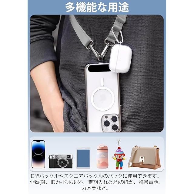 【多機能】スマホストラップとして、すべての携帯電話モデルに適用可能。バッグのショルダーベルトとしても、ほとんどのバッグやトートバッグに適しています。ボストンバッグ、カメラケース、エコバッグ、PC/タブレット バッグ、 機材ケース、保温袋、撮影用資材ケース、ビジネスバッグ、スリーブ・ブリーフケース、ママバッグ、ショルダーバッグ、ジム・スポーツバッグ 等のスペア・交換用 ショルダーベルト/肩掛けひもです。
