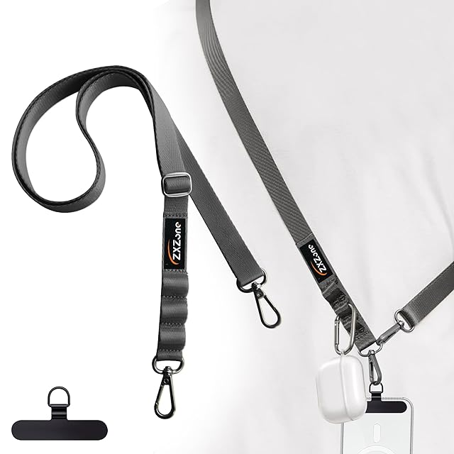 [ZXZone] スマホショルダー 斜めがけ首掛け肩掛け 携帯ストラップスマホストラップ 長い 160cm 幅 2cm 長さ調節可能 ストラップ 1本+タグパッチ1枚入り ショルダーストラップ ロング ネックストラップ スマホ用 パスケース 肩掛け 首かけ ブランド 紛失・落下・盗難防止 便利 (コンクリートグレー)