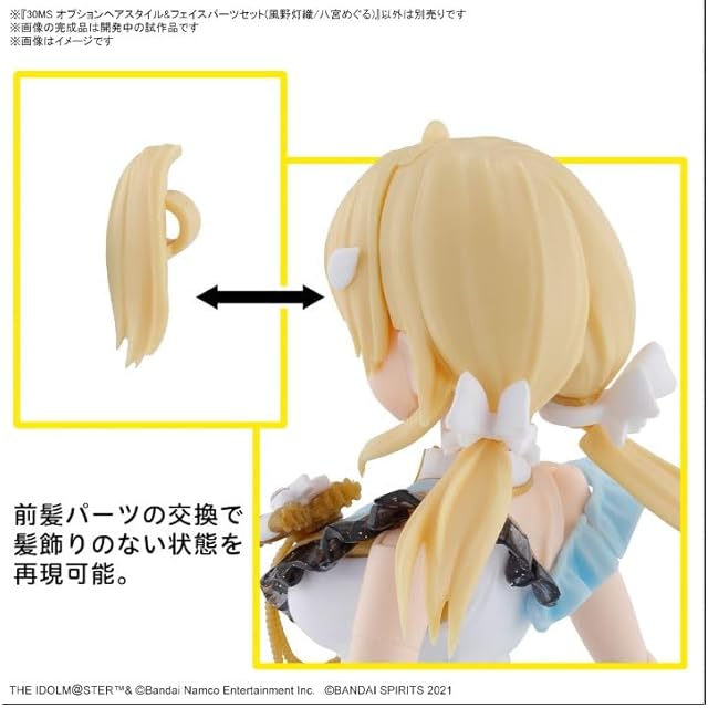 「風野灯織」「八宮めぐる」のヘアスタイルパーツとフェイスパーツがセットになった商品!<br>別売りの30MS オプションパーツと組み合わせてアイドルたちを様々なコスチュームに着せ替え可能!繊細な髪の流れを丁寧に立体化、ポーズに合わせてなびく動きを表現。