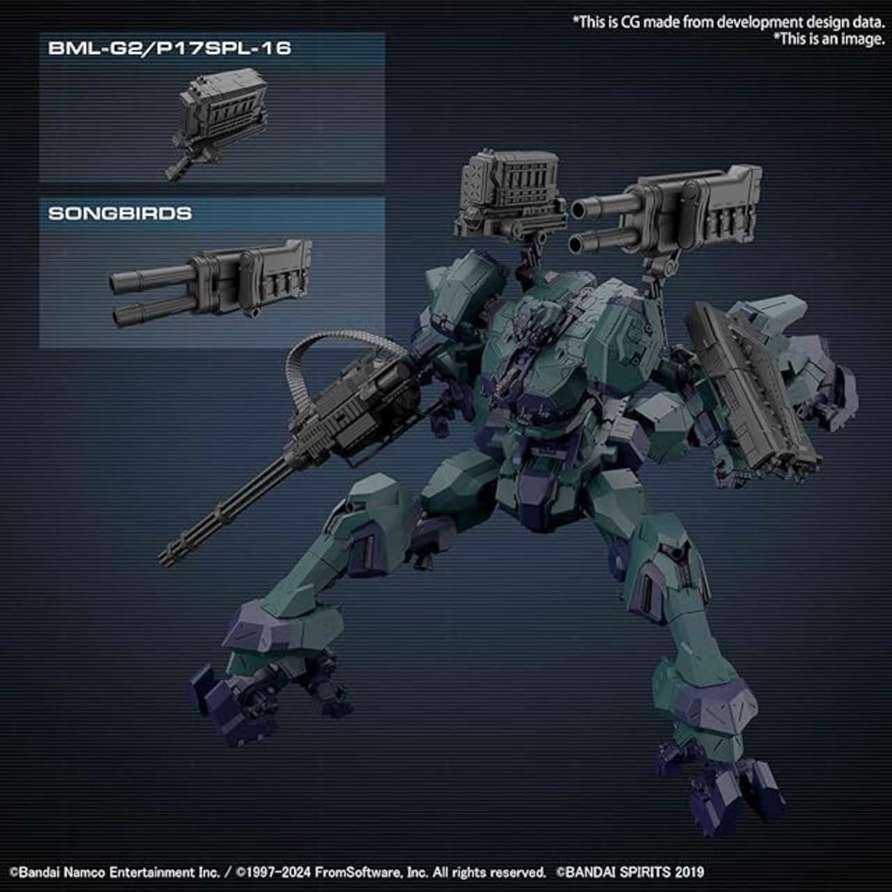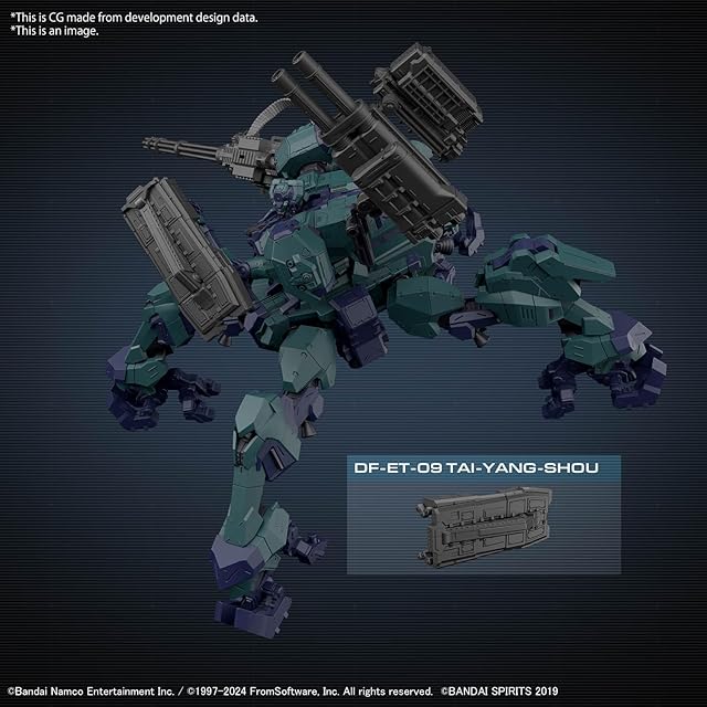 『ARMORED CORE Ⅵ FIRES OF RUBICON』のアイテムが『30 MINUTES MISSIONS』シリーズで商品化。シリーズのキーコンセプト「シンプル組み立て」「カスタム遊び」のもと、G1 ミシガンが操るAC「ライガーテイル」が登場。頭部、コア、腕部、脚部それぞれにシリーズ共通構造を採用し、ゲーム内同様に「アセンブル」をプラモデルで楽しめる。両肩武器と一部左手武器の取り付けには3mmジョイントを採用し様々なアセンブルに対応可能。武器は「DF-GA-08 HU-BEN」「DF-ET-09 TAI-YANG-SHOU」「BML-G2/P17SPL-16」「SONGBIRDS」が付属。