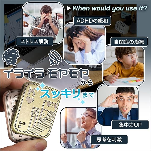悪い習慣をやめるサポートアイテムとしても効果的 爪噛みや喫煙など、悪い習慣を断ち切る手助けをしてくれるフィジェットスライダーです。手持ち無沙汰な時にこのスライダーを使うことで、無意識の習慣を置き換えることができるので、集中力UPや思考の刺激になります。心地良い金属のクラッシュ音と触覚フィードバックが楽しめ、集中力を高めるだけでなく、リラックス効果も期待できます。