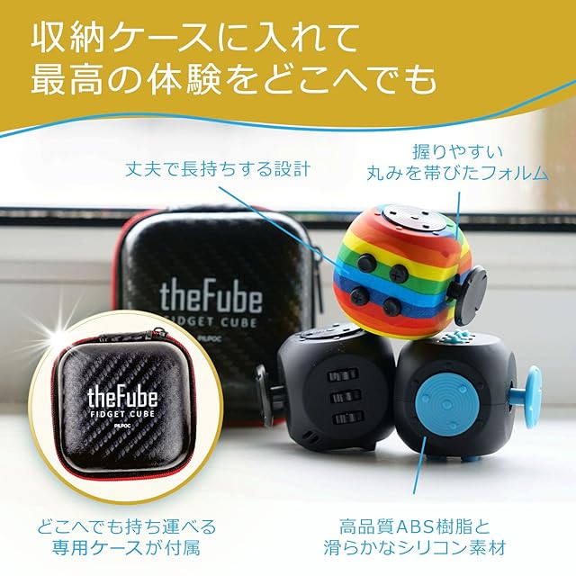 プレミアム品質のフィジェットキューブ:高品質素材で作られているtheFubeフィジェットキューブ。ゴムのような感触で手になじむ滑らかな表面、柔らかいシリコンゴムのボタン、操作性の高いジョイスティック、鮮明で心地よいクリック音、スムーズな回転など、細部までこだわった設計です。価格だけではなく品質を重視する方におすすめのストレス解消フィジェットトイです。