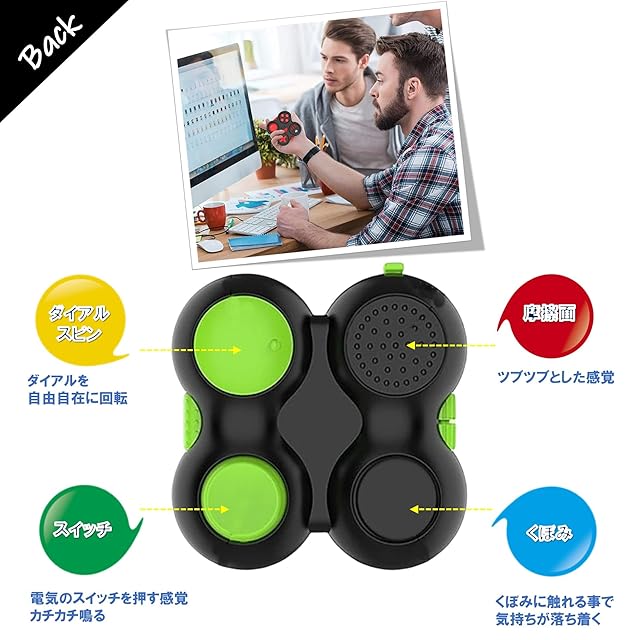 商品名:Leiasnow フィジェットパッド ストレス解消グッズ ストレス発散 おもちゃ ボタン 不安解消 禁煙 自閉症 (グリーン&ブラック)
