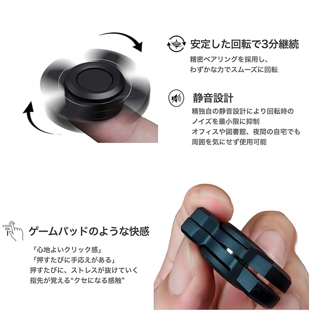 よく回る金属製の高級フィジェットトイ<br><br> スピンで集中、クリックで落ち着き、スライドで思考を流す──<br> 大人のための手遊びグッズとして、デスクワーク中のストレス発散や暇つぶしに最適<br><br> EDC(Everyday Carry)として持ち歩けるコンパクト設計で、<br> 静音・無音の構造がどんな場所でも快適な操作感を実現<br><br> ADHD対策・リラックス・集中補助など、多用途に使える<br> “手持ち無沙汰解消グッズ”として人気上昇中<br>