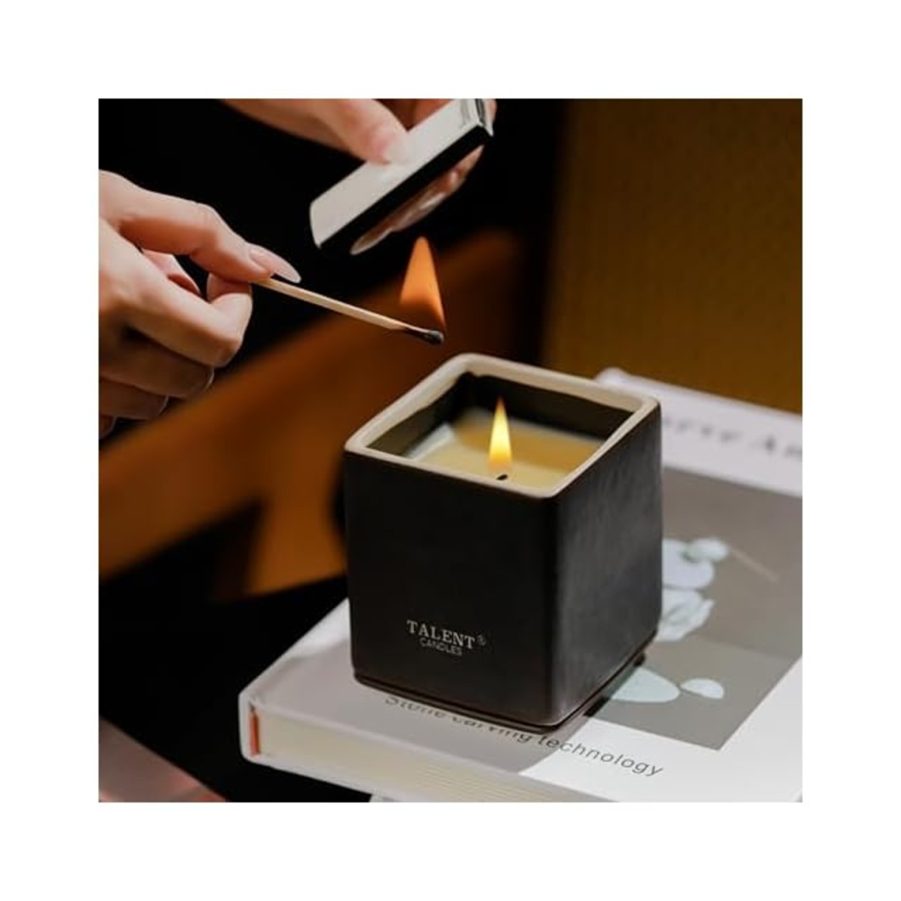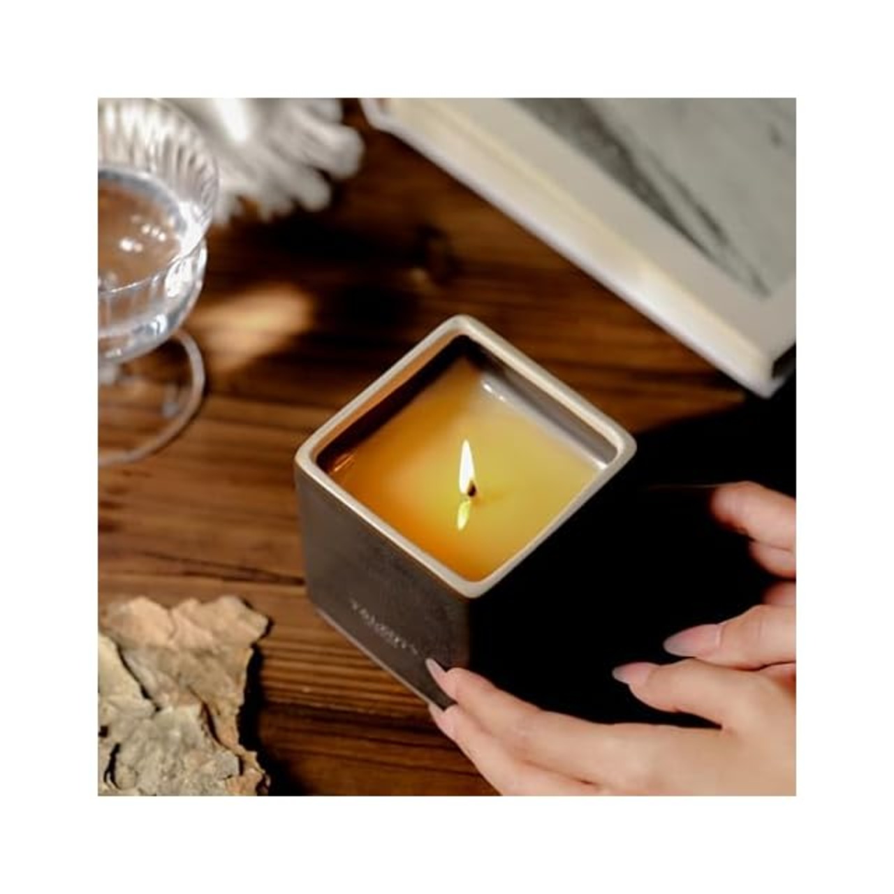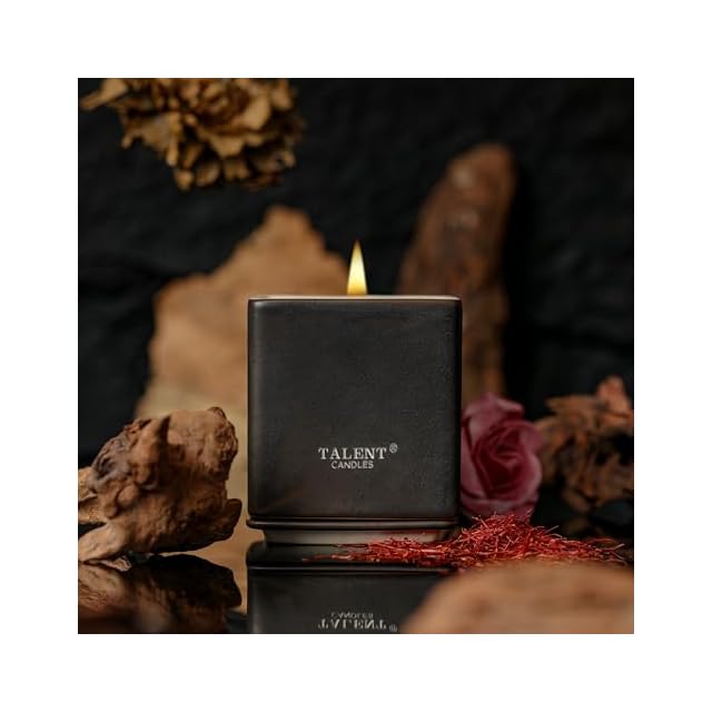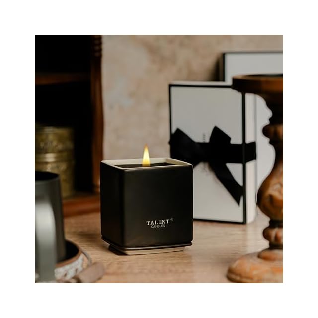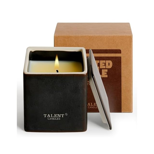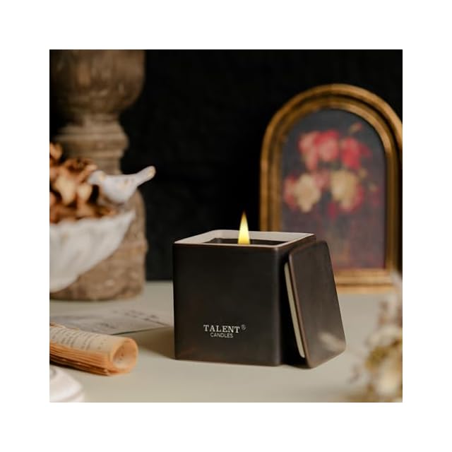 TALENT CANDLES 陶器四角杯アロマキャンドル大豆ワックスキャンドル 約30時間ジャーキャンドル 手作りの品質プレゼント (Santal Noir)