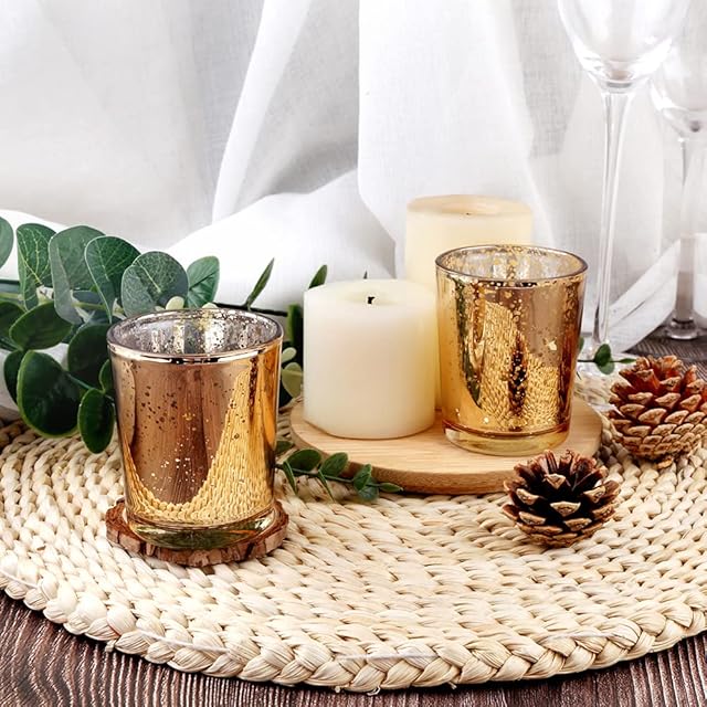 これらの美しく装飾されたガラスキャンドルホルダーは、あらゆる空間に上品な雰囲気をもたらします。ゴールドの色合いが豪華な印象を与え、キャンドルの灯りと相まって温かみのある光を放ちます。ホームパーティーや特別な日のテーブルコーディネートに最適です。ホルダーは丈夫なガラス製で、繰り返し使用できます。キャンドルを灯して、優雅な夜を楽しんでください。