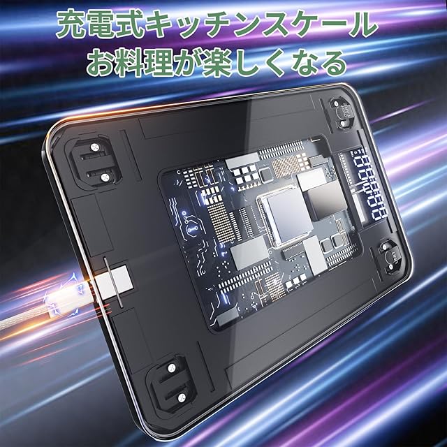 【充電式スケール】250mAhバッテリー。Type-Cポートで2~3時間の充電で20日間連続使用可能。低電量提示機能、残電量不足の場合はLEDディスプレイに提示します。