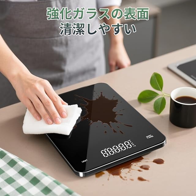 【プロフェッショナル級精度実現】5kg容量で0.1g単位の計測が可能。コーヒー豆1粒(約0.1g)から小麦粉5kgまで、実験室レベルの高精度を実現。多様な食材や物体の計量に対応します。料理のレシピ再現性向上。