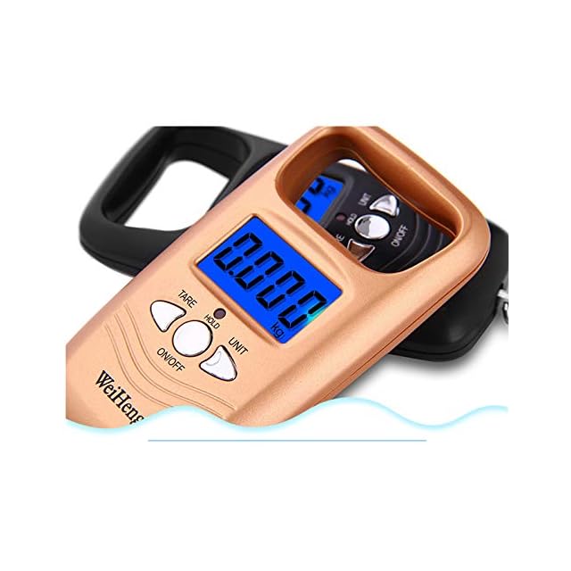 手にしっくりくる、持ちやすいデジタルスケール<br> <br> 商品名: バックライト付 デジタルスケール<br> サイズ:長さ 約11cm、幅 約5.7cm、厚さ 約2.2cm 吊り部 約8.8cm<br> 重量:約93g<br> 最大荷重:50kg<br> 使用電池:単4電池2本(別売)<br> 用途: スーツケース 手荷物 荷物 魚 などの 重量計測<br> カラー:ゴールド、ブラック (カートでお選びください)<br> 販売個数:1個<br> <br> 測り はかり デジタルスケール 釣り 旅行 フィッシュスケール 釣具 重量計 スケール