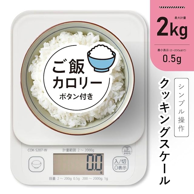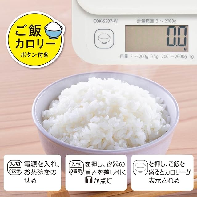商品名:オーム電機 キッチンスケール クッキングスケール デジタルはかり デジタル計り 料理用はかり 2kg計 ご飯カロリーボタン付き ホワイト COK-S207-W 08-1200 OHM