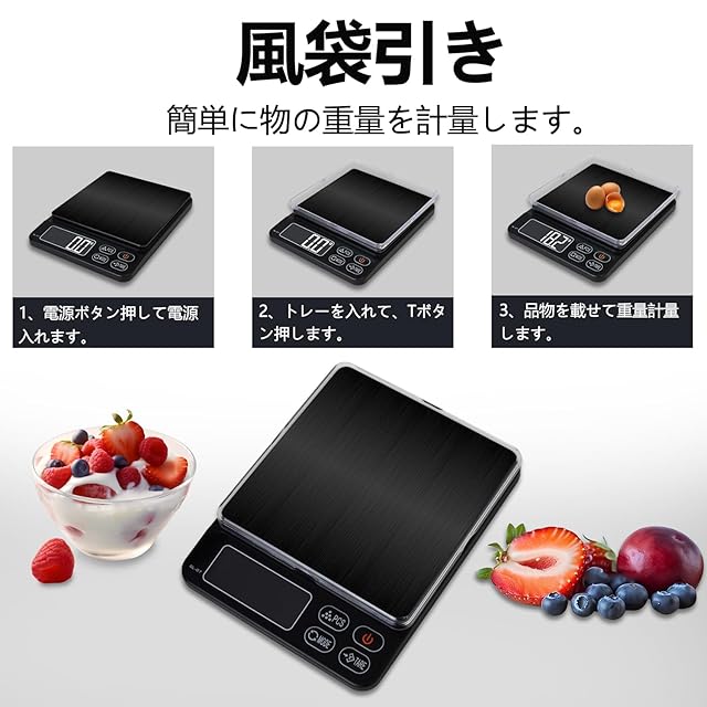 はかり デジタル デジタルスケールはかり 3000g 計量器 0.1g単位 3kg キッチン クッキングスケール (ブラック)