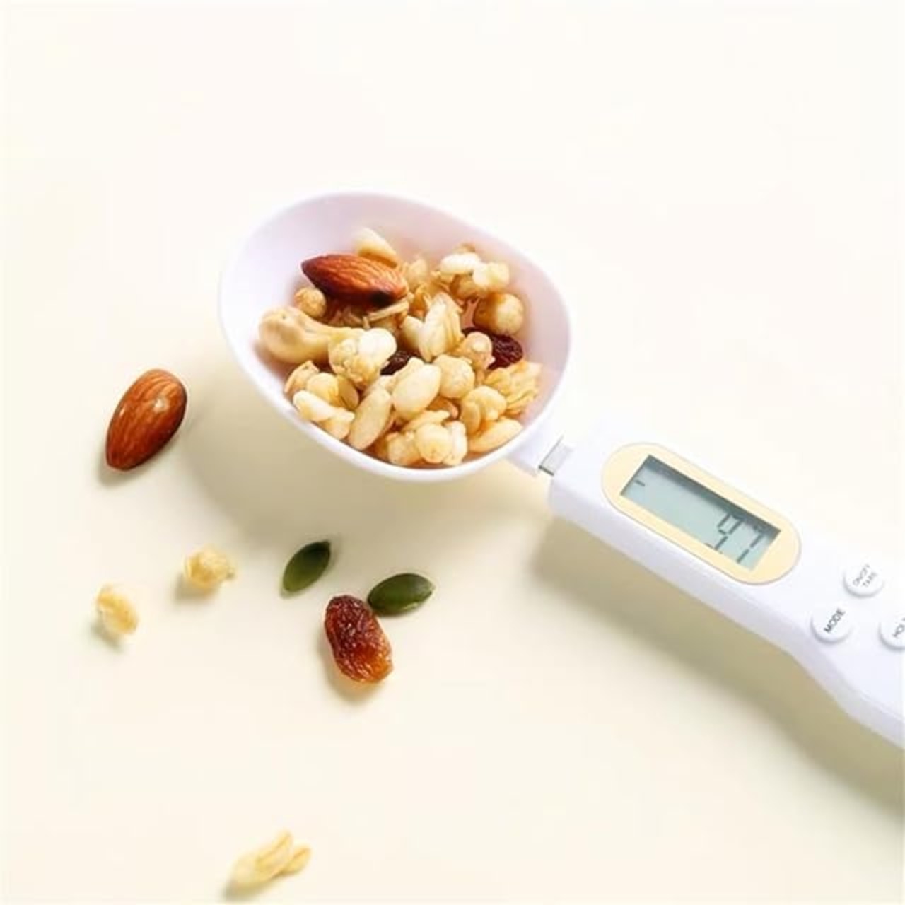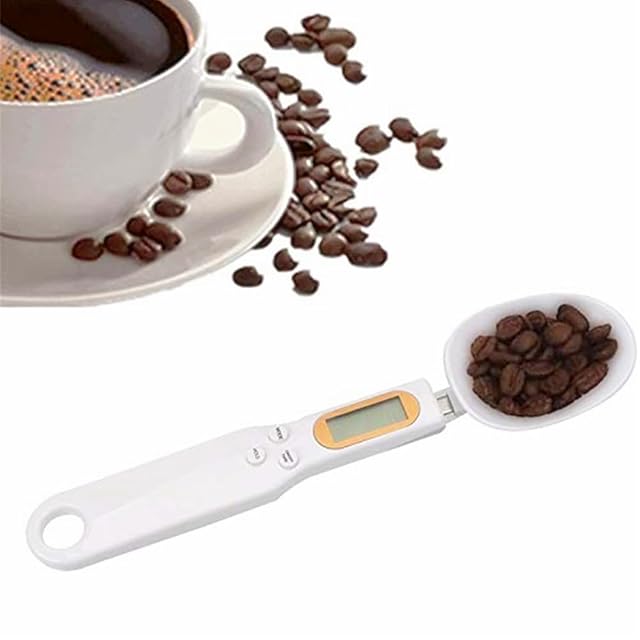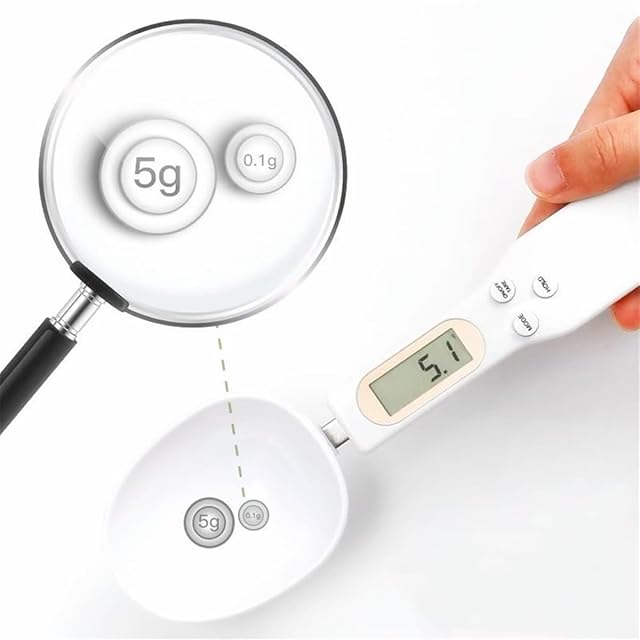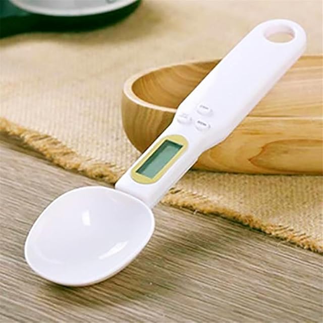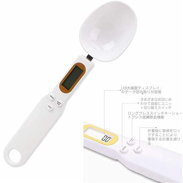電子計量スプーン - デジタルスプーンスケール 料理・ベビー用 補助食品・猫粮の計量に最適 オートパワーオフ機能 壁掛けフック穴付き (ホワイト)