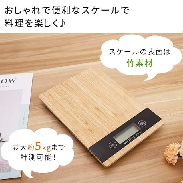 mitas 竹製キッチンスケール デジタルスケール 最大5kg対応 クッキングスケール 風袋引き 薄型 軽量 5000g 5kg ベージュ TN-BBSL