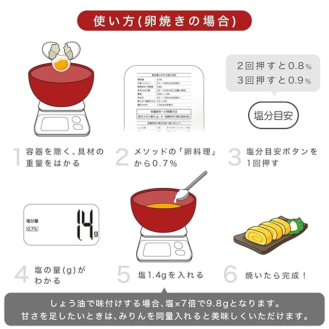 【わかりやすい】ボタンを押すだけで簡単に塩分量がわかります。グラムで表示されるからわかりやすい!塩分が気になる煮物、卵料理、唐揚げ、炒め物、汁物、味噌汁なども楽々チェック!