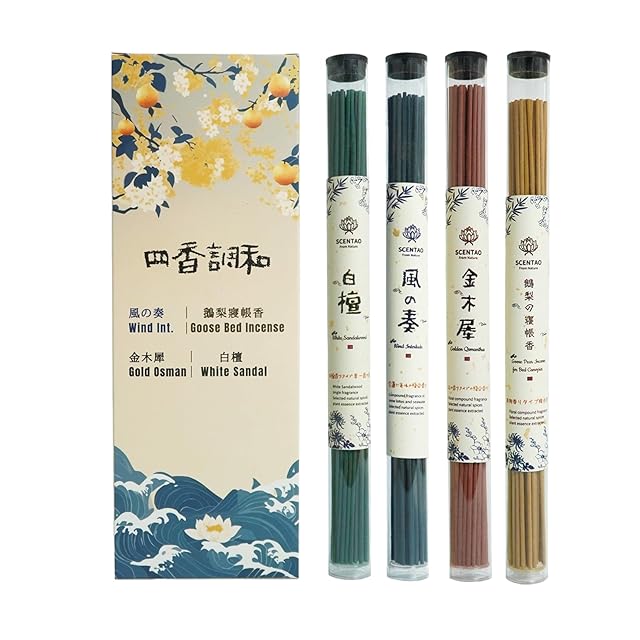 四季適用の香りセット、4 種類の香り(金木犀、風の奏、鵝梨の寝帳香、白檀)を 1 セットに収め、多様なシーンでご利用いただけます。各 45 本(計 180 本)で、日常のリラックスや日常の作業環境の快適さににお役立てください。 金木犀:花の優雅な香りで、茶室や和やかな時間を彩ります。 風の奏:雪蓮と海水の清涼感で、瞑想やオフィスでの沈静な雰囲気を演出。 鵝梨の寝帳香:果実のさわやかな香りで、就寝前のリラックスにぴったり。 白檀:木質の沈静な香りで、書房での快適な雰囲気を演出ます。 天然と伝統の技術 31-35℃の低温 CO₂抽出技術で、雪蓮、鵝梨、金木犀、白檀などの植物エッセンスを丁寧に抽出。化学合成香料不使用で、安全に四季を通じてお楽しみいただけます。 唐宋時代の三段階香り(前味・中味・後味)を受け継ぎ、時間と共に変化する香りのゆったり感を提供します。 ギフトにも最適 和風デザインのボックスと透明収納管で、誕生日や季節のお祝いにも適しています。各香りを試して、あなたに合った香りを見つけてください。