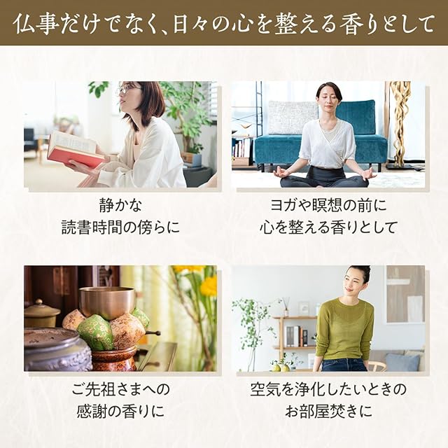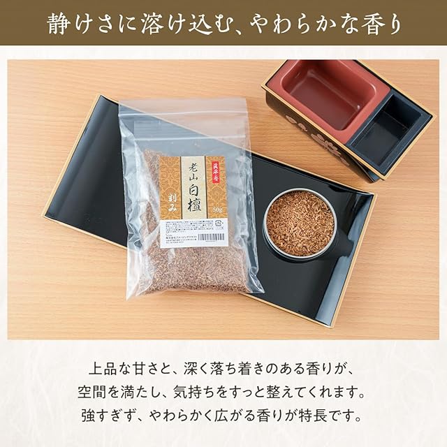 老山白檀を焚くと、上品な甘さと深みのある洗練された白檀の香りを楽しむことができます。