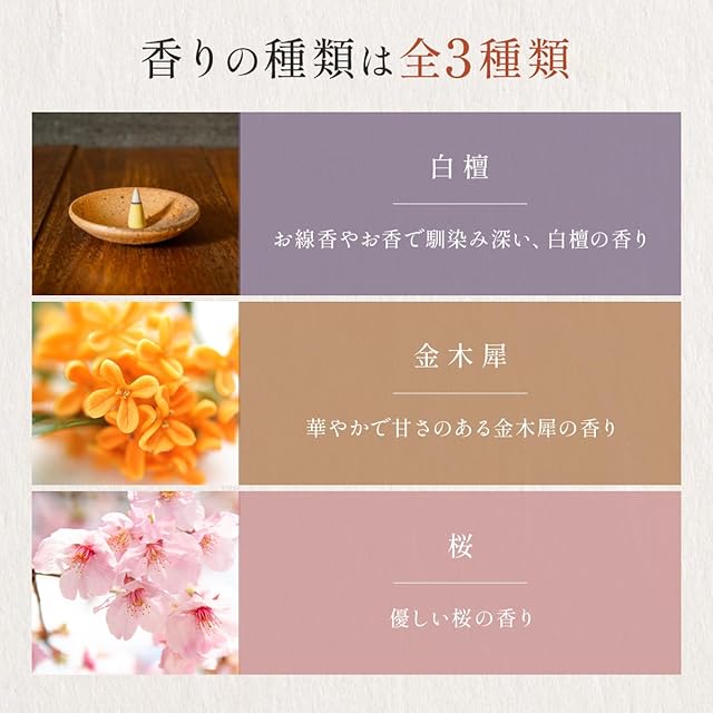 香木を使用した本格的な香りをお楽しみいただけます。