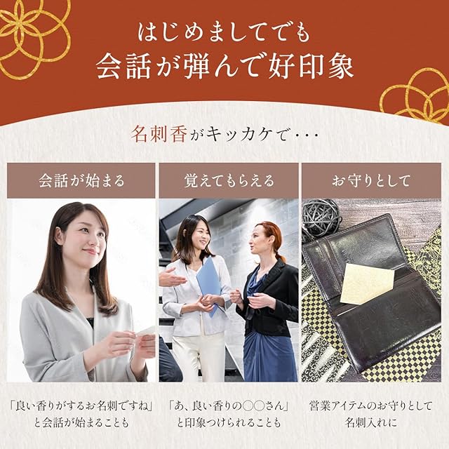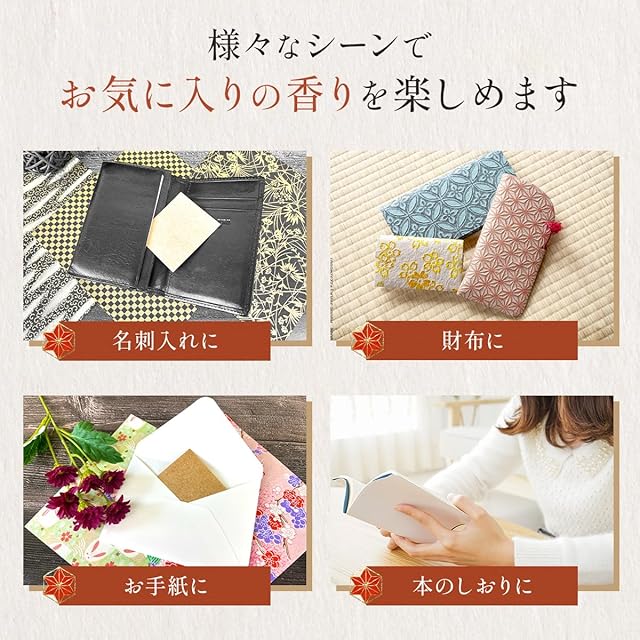 両面に本格的な塗香を施した名刺香です。 香木を使用した本格的な香りをお楽しみいただけます。 名刺入れなどに入れて香りをお楽しみください。 製造:日本 香りが弱まらないように、アルミパックに封入しています。開封後は必ずしっかりとチャックを閉じてください。