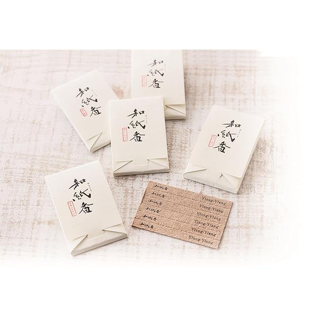 お香職人が紙漉の技術を身につけ、和紙にお香を含ませた和紙香。ミシン線に沿ってちぎって、アコーディオン上に折り曲げ、通常のお香のように火を点け、お皿の上置いてください。灰がなくても燃えます。