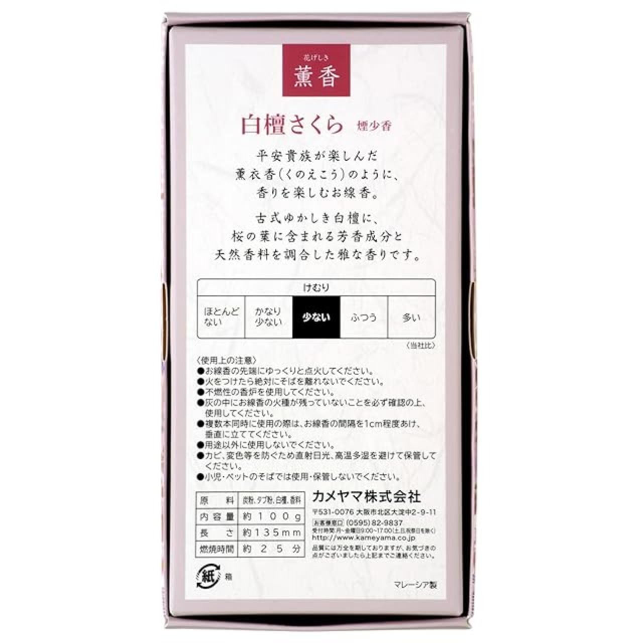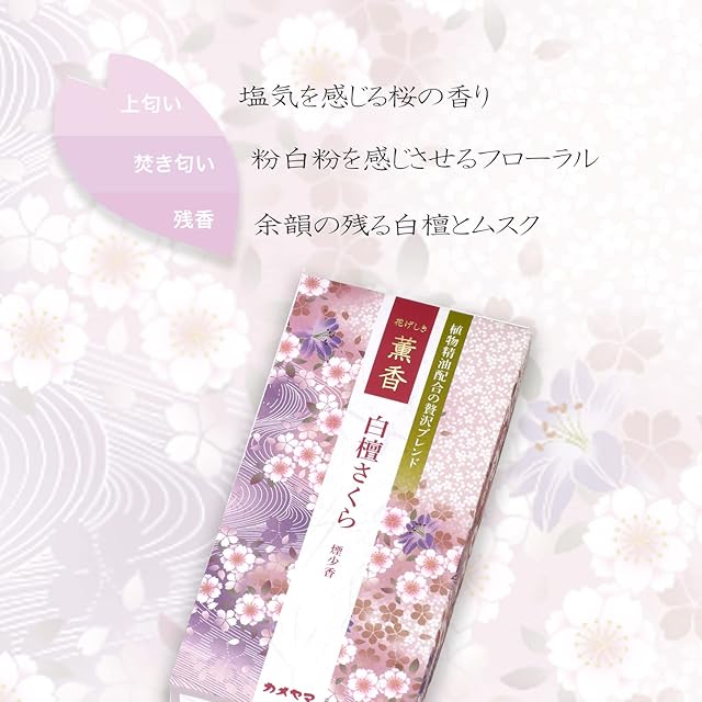 商品名:カメヤマ 花げしき 薫香 白檀さくら 約100g 約220本 お線香 お香 煙少ない
