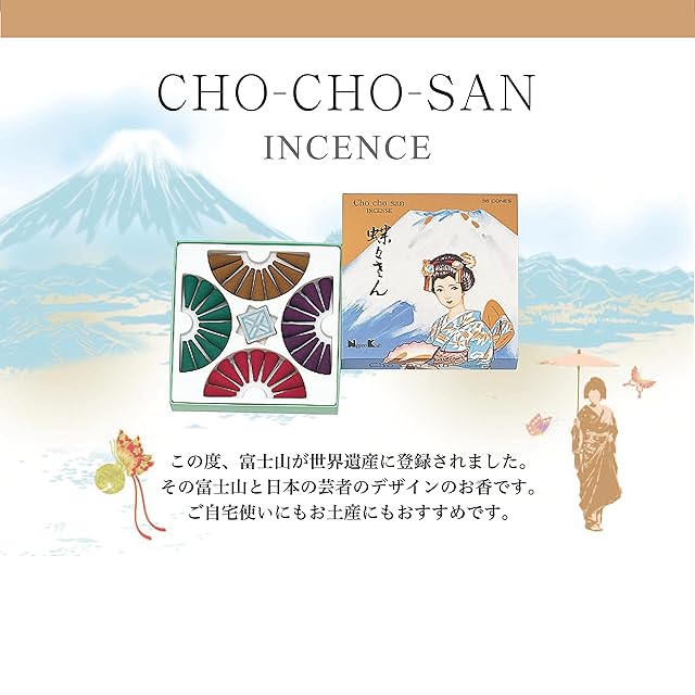 富士山と芸者さんをデザインに取り入れた、華やかな香りのお香です。