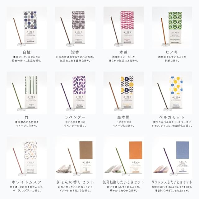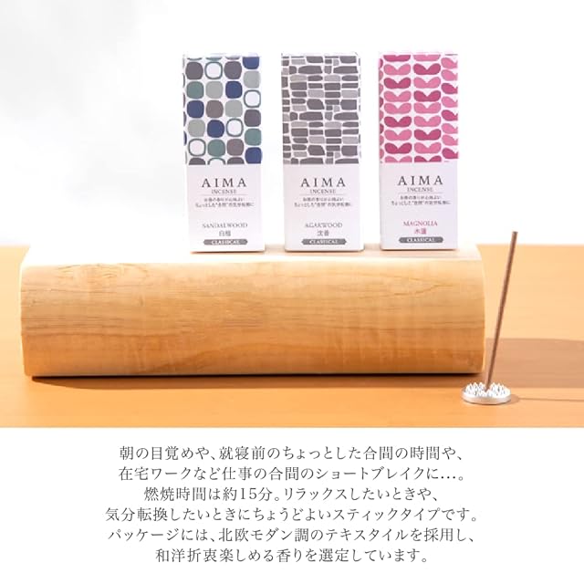 商品名:藤栄(FUJIEI) AIMA お香 白檀 お香立て付 15本入り 約7cm A-001 優雅 上品 スティック タイプ 香り アロマ リラックス 気分転換 リビング 寝室 おうち時間 作業時間 北欧 モダン 和洋折衷 ギフト プレゼント 贈り物 日本製