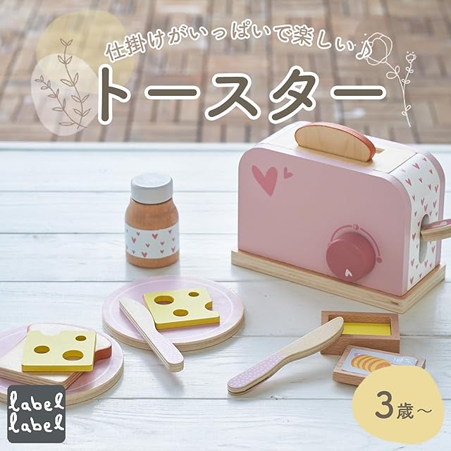 商品名:LabelLabel (レーベルレーベル) トースター おままごと 木のおもちゃ 木製 知育玩具 ままごとセット 誕生日プレゼント 女の子 (ピンク)