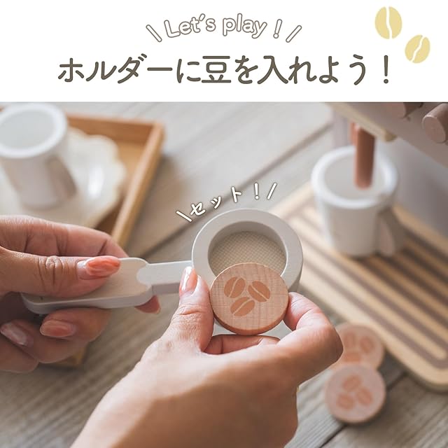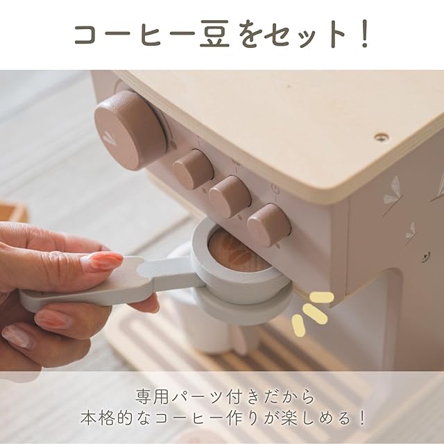 LabelLabel (レーベルレーベル) エスプレッソマシン おままごと キッチン 木製 おもちゃ ままごと 子供 男の子 女の子 木のおもちゃ (ラテ)