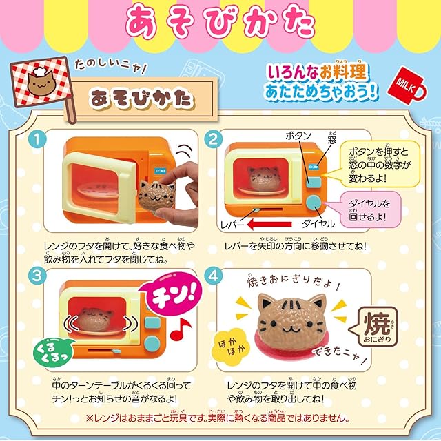 ✅【レンジセット内容】レンジ本体、焼きおにぎり(猫の顔型)、オムライス、チン!するお弁当、チン!する冷凍たこやき、ホットミルク用カップ、お皿