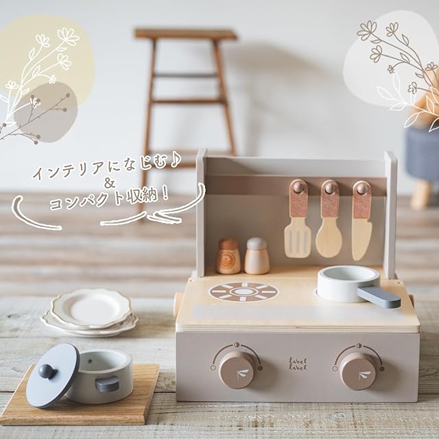 LabelLabel (レーベルレーベル) フォルダブルクッカー おままごと キッチン ミニキッチン 木製 ままごとセット 誕生日プレゼント 男の子 女の子 木のおもちゃ (ラテ)
