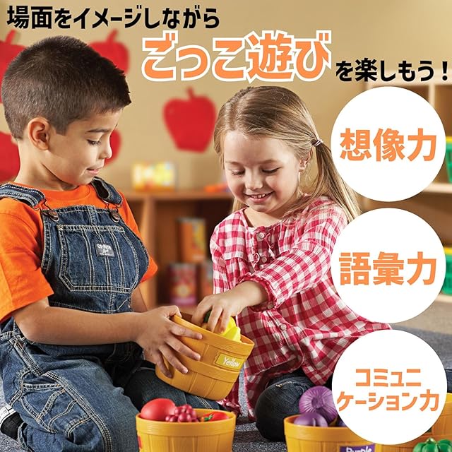 世界100カ国以上で愛されるラーニング リソーシズ(Learning Resources)社の野菜と果物のカラーソーティングセット。本物のようなピースでおままごとを楽しみながら、野菜・果物の名前、色の認識・分類などのスキルを身に付けましょう!