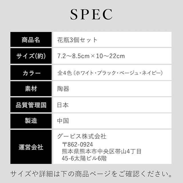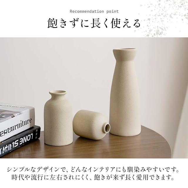 ・シンプルでおしゃれなデザインの花瓶3点セットです。 ・落ち着いた雰囲気のモノトーンカラーのバリエーションを揃えています。 ・ 陶器素材で安定感があり幅広いサイズの花が飾れます。 ・シンプルなフォルムのフラワーベースで飾る部屋を選ばず使えます。 ・和室にも洋室にも合わせやすい花瓶です。
