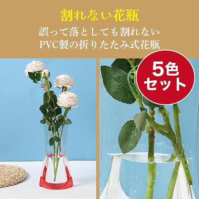 EdisonBrain 折りたたみ式 割れない花瓶 5色セット PVC製 軽量 ポータブル 花器 引越し 持ち運び 便利 インテリア フラワーベース