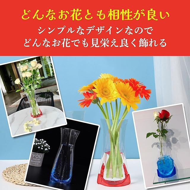 【割れない折りたたみ式花瓶】PVC製の折りたたみ花瓶は、誤って落としても割れることがないので、テーブルやデスク上でのお花の飾りつけにも安心です。割れない素材で、ペットや小さなお子様がいる家庭でも安心して使えます。
