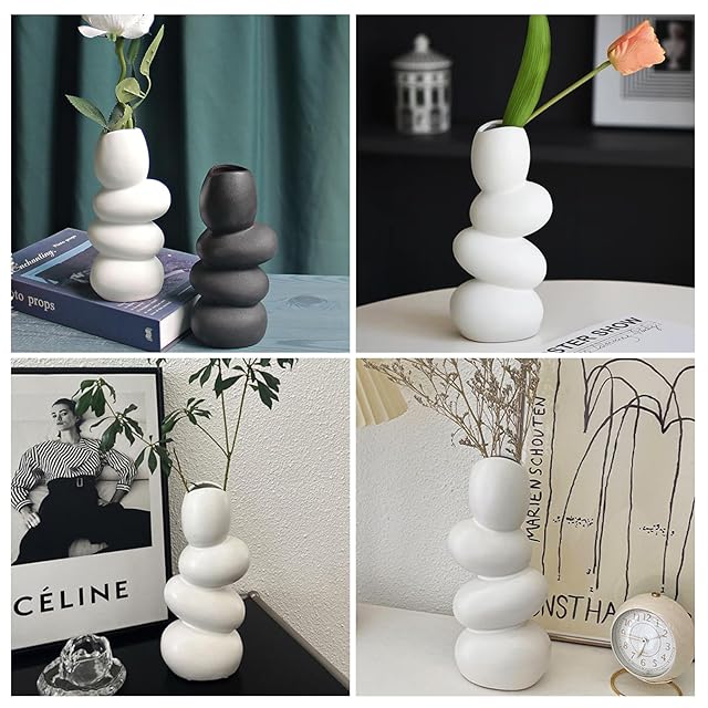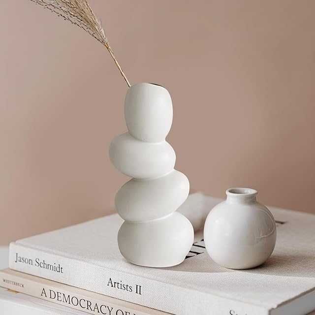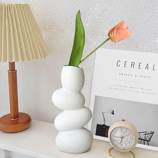 Vnmcry 花瓶 一輪挿し 陶器 フラワーベース 水入れ可花瓶 おしゃれ 和風 インテリア vase インテリア オシャレ 素陶 かびん 結婚式 プレゼント ホワイト